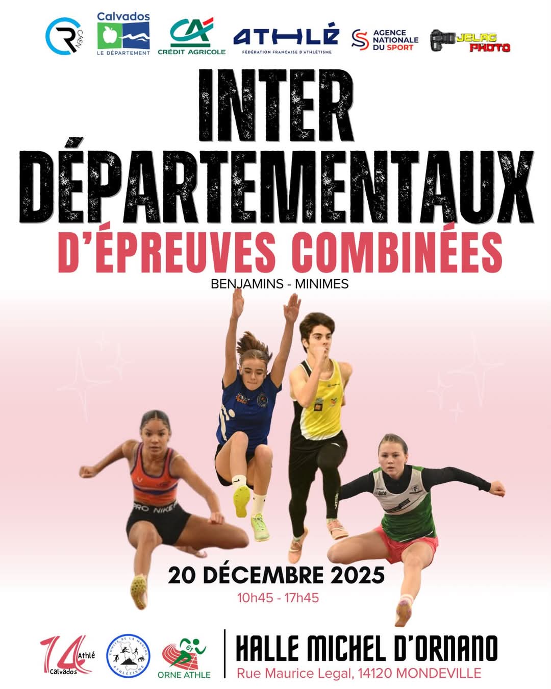Les Départementaux d’épreuves combinées Benjamins et Minimes en salle se dérouleront le samedi 20 décembre 2025 à Mondeville.