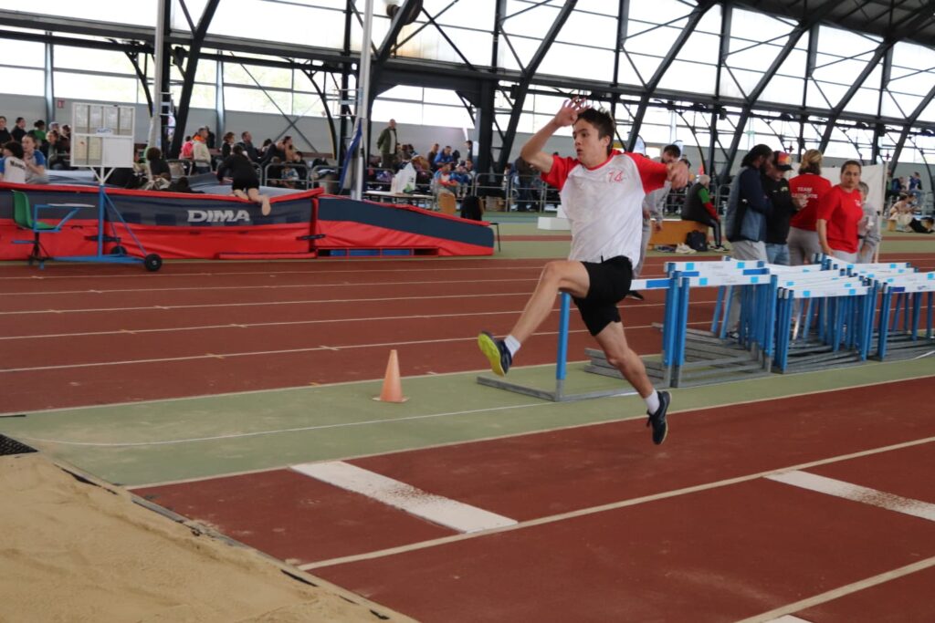 Hugo JEHANNE poursuit sa progression avec deux nouveaux records personnels : 6″80 sur 50 m (–12 centièmes) et 5m50 en longueur (+20 cm). Il franchit également 1m51 en hauteur. Avec un total de 100 points, il améliore son record au triathlon et se classe 22ème.