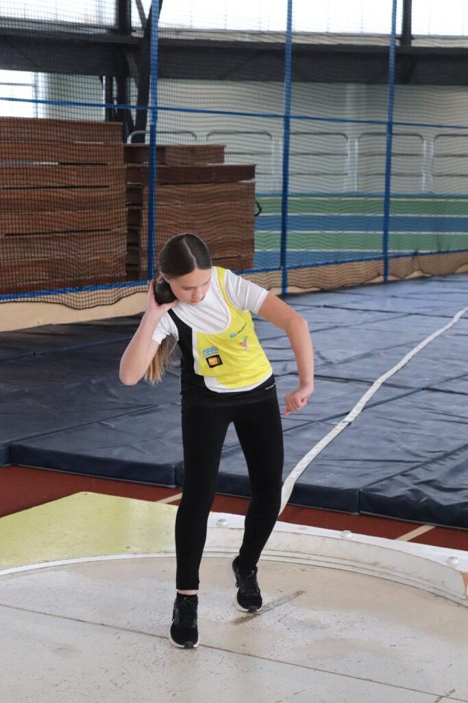 Chez les benjamines, Romane LEFOURNIER réalise une très belle compétition en améliorant ses records personnels sur ses trois épreuves : 7″88 sur 50 m, 7m04 au poids et 7m60 au triple saut.