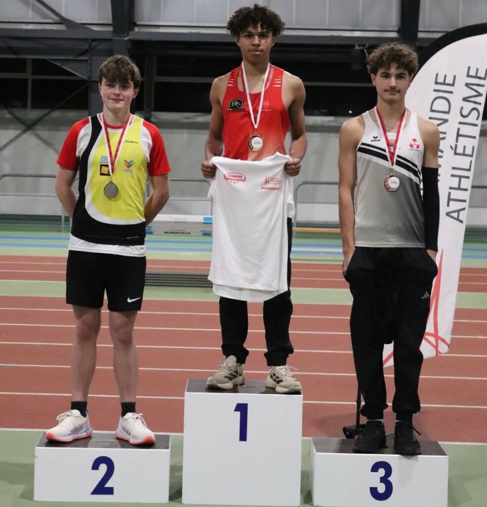 Chez les minimes garçons, ils étaient cinq à représenter le club, avec de très belles performances d’ensemble. En constante progression, Anatole CIRETTE réalise une compétition exceptionnelle en devenant vice-champion de Normandie minime avec un total de 2 880 points. Ce score constitue à la fois un nouveau record personnel, un nouveau record du club, ainsi que la 11ème meilleure performance française de la saison. Anatole améliore quatre de ses records personnels, en frappant fort dès le 50 m haies avec un chrono de 7″30, nouveau record du club et 12ème (ex aequo) meilleure performance française de la saison. Il améliore également ses marques au lancer de poids avec 9m62 (+34 cm), au saut en longueur avec 5m61, nouveau record du club, et sur le 1 000 m en 3’08″85.
