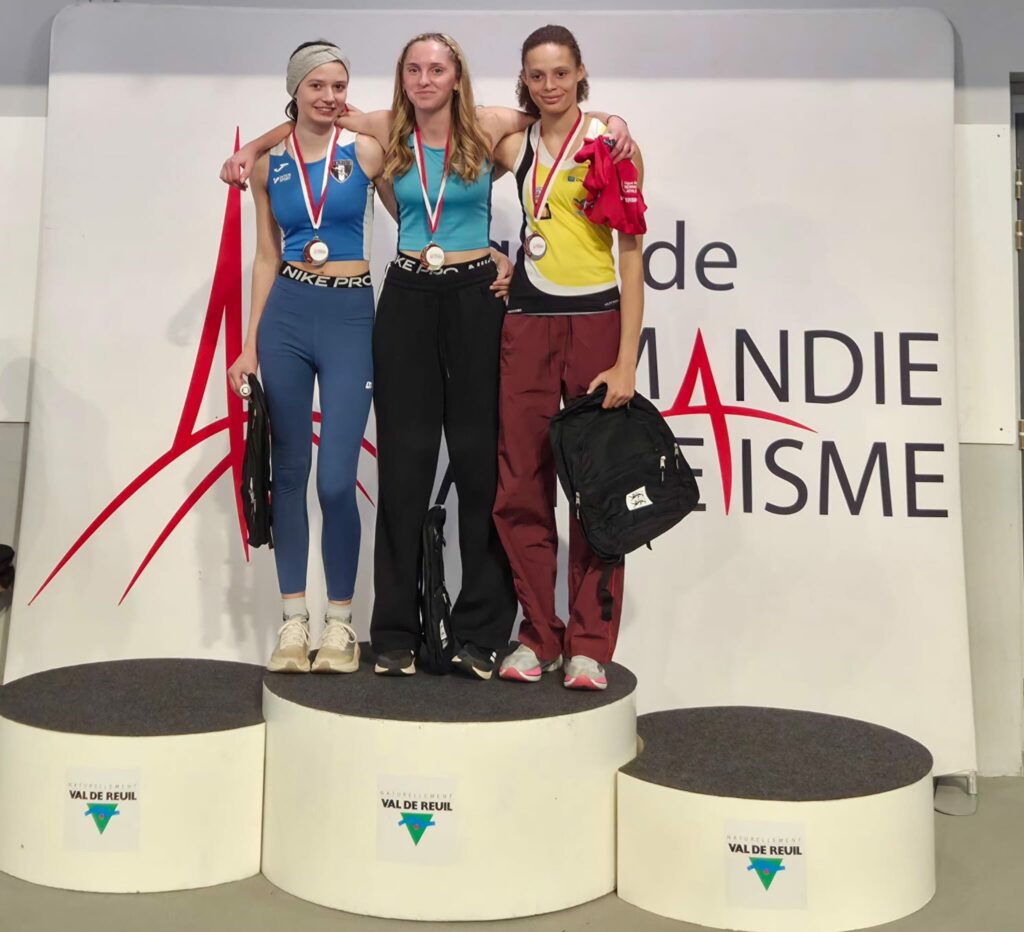 Maé DUFAG s’est approchée de son record personnel en série du 50 m avec un chrono de 7″31. Elle a ensuite franchi 1m53 au saut en hauteur, à seulement un petit centimètre de son record, performance qui lui permet de monter sur la 3ème marche du podium.